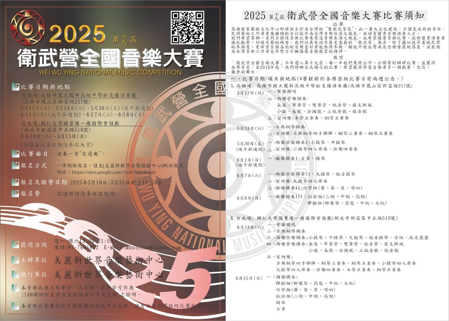 ****本賽事為私人單位"美麗新世界音樂藝術中心"所主辦,與"國家表演藝術中心-衛武營國家藝術文化中心"無涉。若有比賽相關問題,請聯絡本專頁****