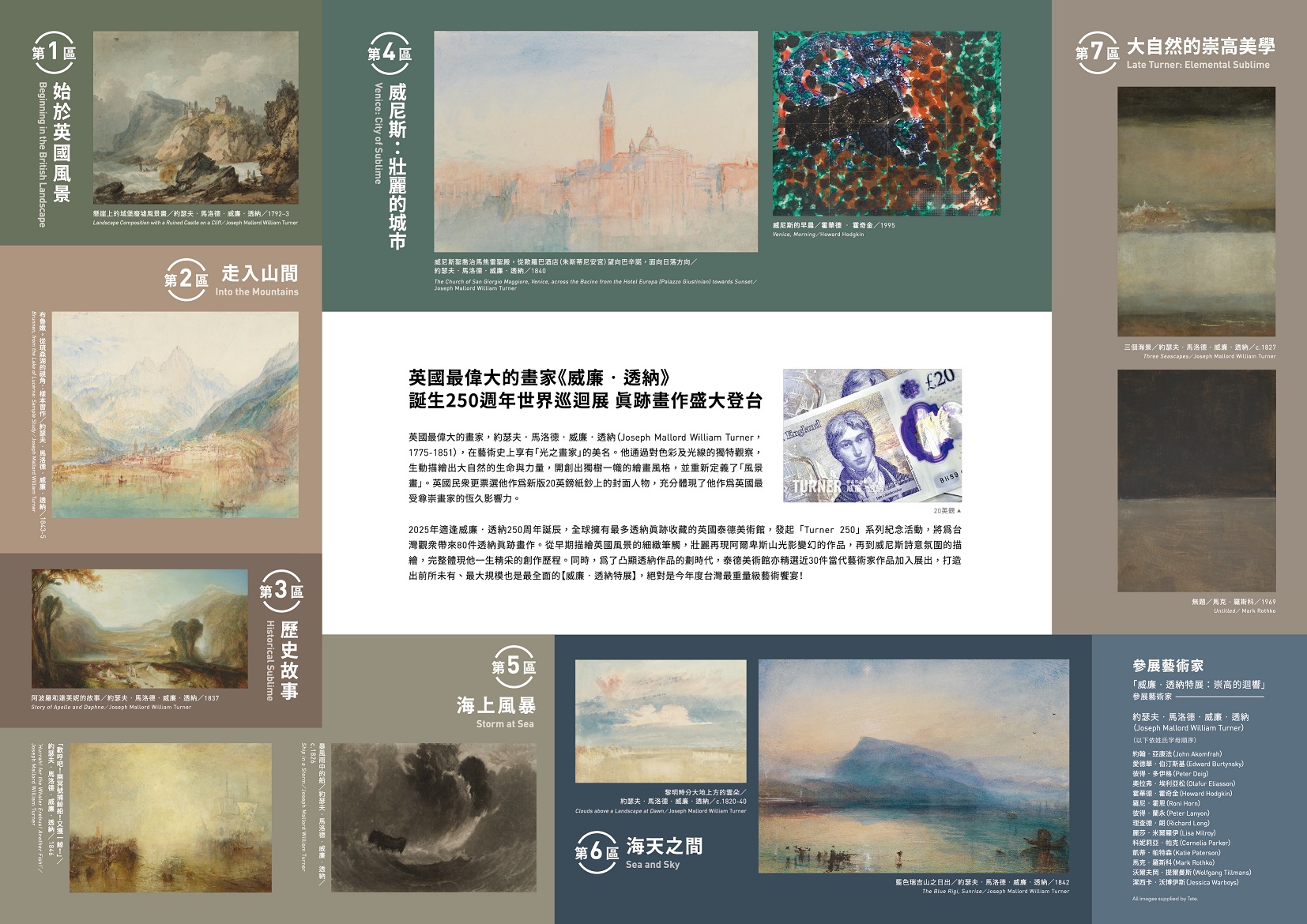 一、展覽說明:「威廉.透納特展:崇高的迴響」展出80件透 納真跡畫作,分為七大展區,完整呈現其創作歷程與藝術 理念,並加入28件英國泰德美術館精選的當代藝術作品, 讓學子體驗藝術的時代對話與想像空間。